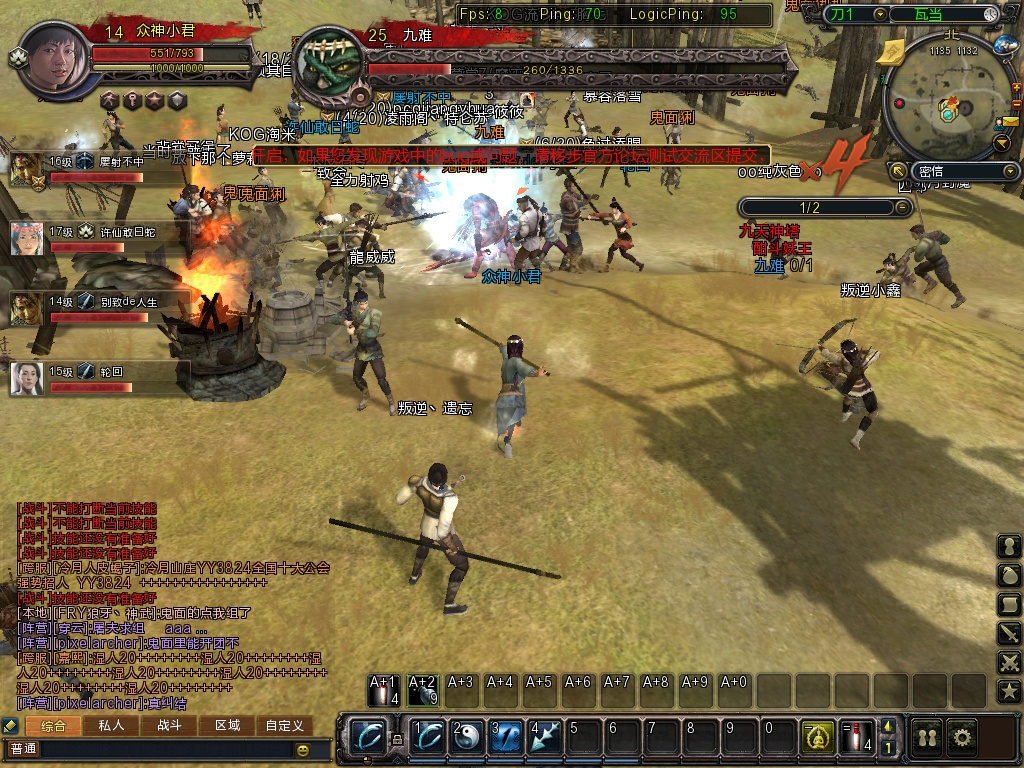 那么来谈谈刀2的PK吧 不说群战 只说单P目前刀2的格斗模式 我把体力条撇开先不去说它是一种压制打法,因为有硬直的存在,所以被压制的一方还不了手(撇开闪身来说)。这就不存在对攻的情况发生,当然也就不存在见招拆招了。刀2给我们创造了的环境更希望多跑位跟多猛攻(应为破绽系统 即体力系统是可以慢慢恢复的) 利用优秀的追击技能去追赶对方达到压制的目的,当然考验另一方的跑位。这就是基本的套路了,但是有闪身的存在,也就有攻防的转换,但是你转换了别人同样可以转换。其实这也是枪为什么目前有优势原因,攻击距攻击频率。枪只要在中段距离中可以轻易压制其他职业,但是他的追击能力跟剑是有差距的,毕竟追风的追击很强,但是攻击频率却不高。但是这样的格斗目前很多网游都是这样来设定的。